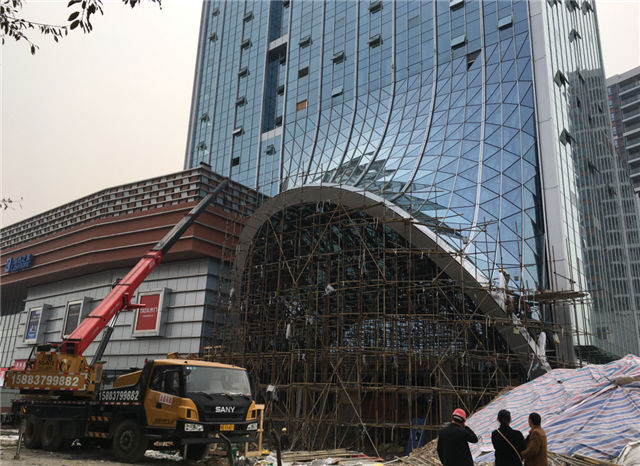 14#酒店:入口鋼構雨篷玻璃面板安裝