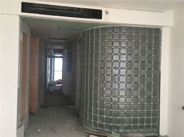 3、酒店:客房?jì)鹊蹴敺獍?、刮膩子完成,墻面刮膩子、裝飾基層施工完畢,衛生間貼墻地磚、玻璃磚隔斷施工完畢。五層早餐區隔斷施工完畢。外立面幕墻大面積已完成,入口雨篷玻璃安裝完畢。