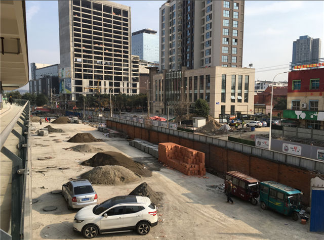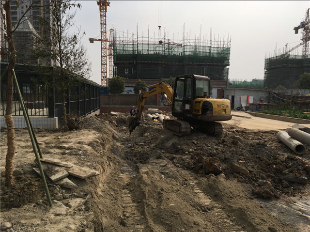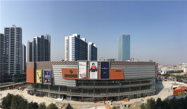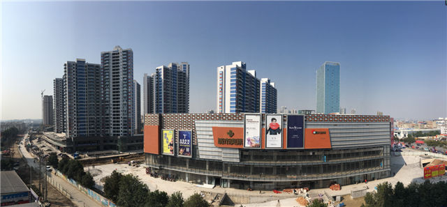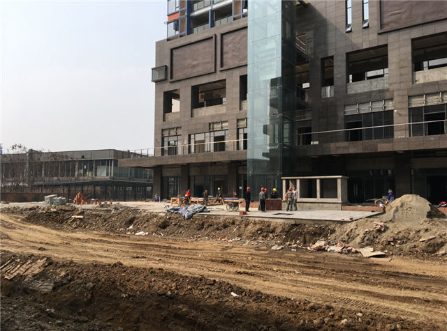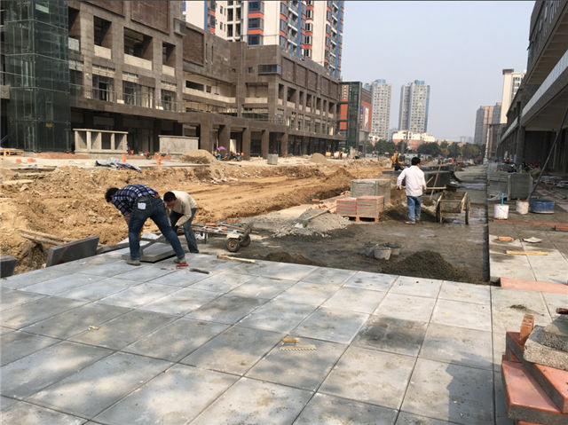 7、室外附屬:居然之家主入口室外附屬全部完成;時(shí)尚百貨及弘光路一側廣場(chǎng)大面積石材鋪貼完成,8#、9#樓一側室外鋪裝區域正在做石材面層粘貼。居然之家四層屋面鋪裝及綠化施工完畢。A、B區中間市政道路正在進(jìn)行開(kāi)挖、埋管施工中。