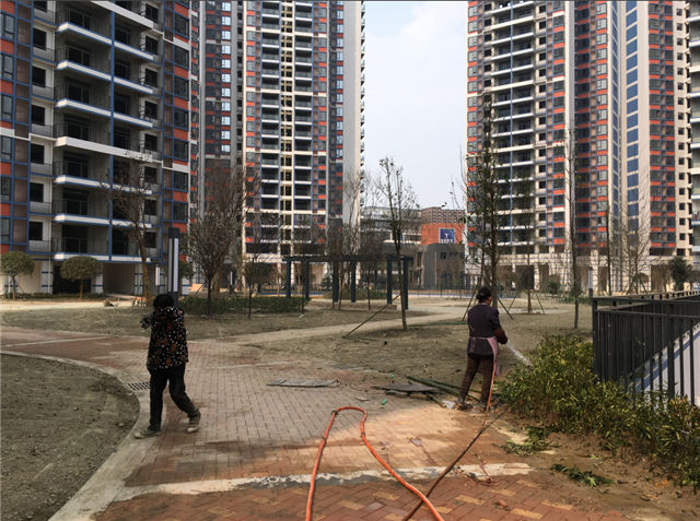 6、室外附屬:小區內人行道區域面層粘貼全部完成,喬木、灌木已種植,綠化帶內開(kāi)始種植綠籬。小區外圍正在做面層鋪貼施工。